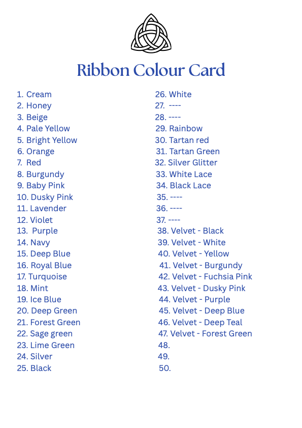 This knot is designed with a structured infinity knot in the centre. It then has 3 love knots on either side (1 double love knot and 2 Josephine knots) with the velvet ribbon slipped through the Celtic knots and thread through to each end. If you would prefer the cord to be a 'tie your own' style infinity knot, please get in touch!